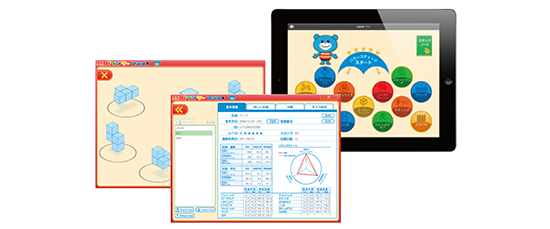デジタル認知テスト『脳バランサーキッズ』を用いて、認知機能のアセスメントを行います。定期的なアセスメントに基づき、お子様一人ひとりの発達の特性、偏りに合わせた支援を行います。