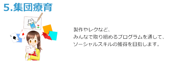 ソーシャルスキルとは、「人が社会で生きていくうえで必要な技能」をいいます。お子様の負担になりにくい、遊びや運動を通して、集団生活のルールや自己表現の仕方などの社会性を育みます。